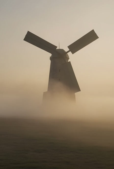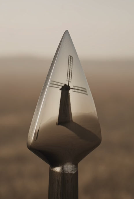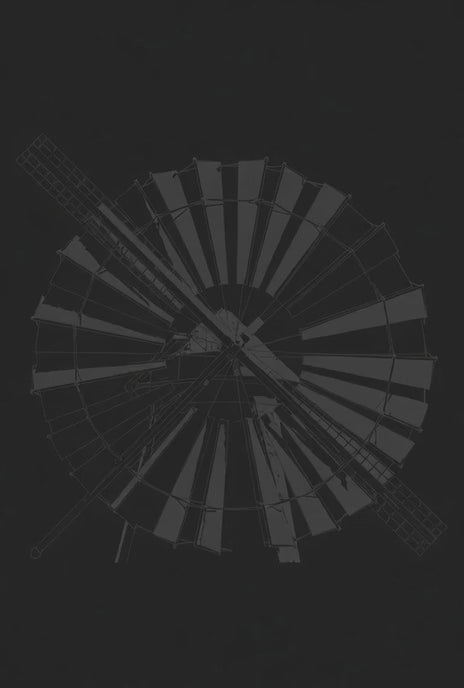 Crafted from heavyweight premium French terry cotton, this oversized crewneck reinterprets the fractured windmill of 1605 through a restrained architectural lens. The back graphic is rendered in gunmetal pearl ink — a metallic finish that subtly shifts under light, revealing depth without excess.