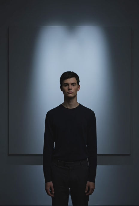 This black crewneck sweatshirt features a refined “wanted” composition inspired by The Picture of Dorian Gray. Stripped of theatrical excess, the design focuses on structure, typography, and quiet tension. A sculptural monochrome portrait stands at the center — youthful, serene, untouched — while a faint shadow of corruption lingers behind him, almost imperceptible.
